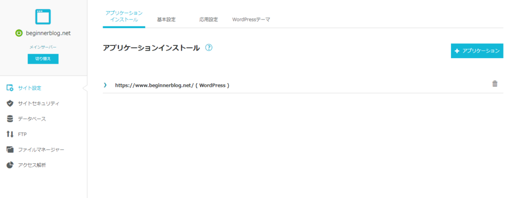 アプリケーションインストールの文字の下にあるサイトのURLをクリックします。