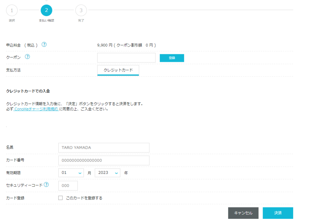 次に支払い情報を入力します。