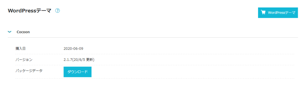 決済が終わると購入前に表示されたWordPressテーマの画面が開くのでここで購入したテーマをダウンロードします。