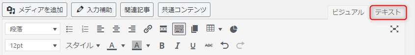 WordPressの旧エディターで右上にある「テキスト」をクリックします。