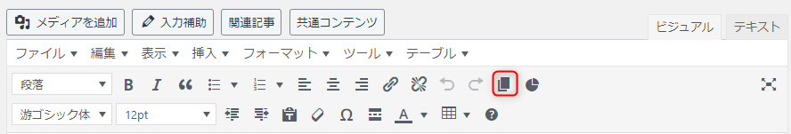旧エディターの場合は記事を書く画面の上のツールバーにある四角が2つ重なったボタンをクリックします。